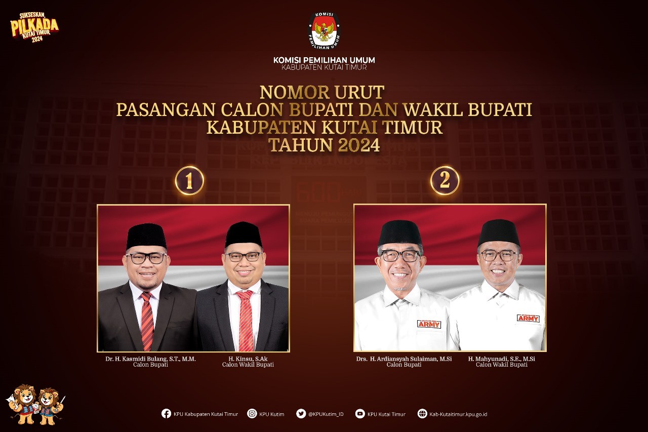 hay teman pemilih gambar diatas adalah hasil Pengundian Nomor Urut Pasangan Calon Bupati dan Wakil Bupati Kabupaten Kutai Timur Tahun 2024.